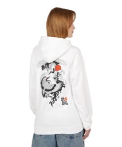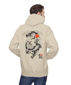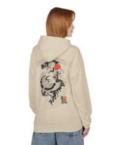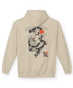 🌀 In the lore: In Japanese culture, cranes (tsuru) are revered as symbols of good fortune, peace, and long life. Combined with the rising sun, this artwork represents renewal and hope. Wearing this hoodie means carrying a timeless piece of Japanese heritage in your everyday style 🌅🕊️.