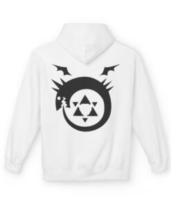 FMA Ouroboros hoodie captures the mysterious symbol of the Homunculi from Fullmetal Alchemist, turning alchemy’s darkest mark into bold streetwear. The Ouroboros emblem, representing eternity and rebirth, makes this hoodie more than fashion—it’s a tribute to one of anime’s most powerful symbols ⚡🐍.