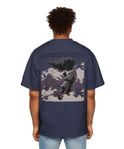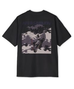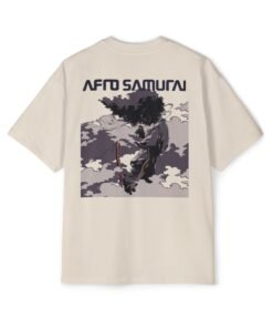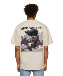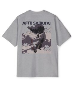 Cut through the haze with the Afro Samurai Mist oversized T-shirt—a heavyweight streetwear piece that stages Afro in profile against layered clouds and drifting mist in a bold back print. Drop-shoulder ease, monochrome mood, statement presence. 🌫️⚔️