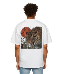Make a statement with the Japanese Tiger oversized T-shirt. Inspired by ukiyo-e motifs, the bold back print features a roaring tiger framed by stylized waves and wind bars—clean, powerful, and built for modern streetwear fits. 🐯🌊