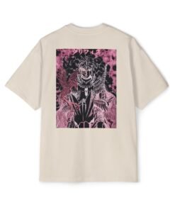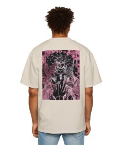 The drop-shoulder oversized fit delivers comfort, presence, and a distinctly high-fashion edge for anime fans who like their style loud. The detailed back print bursts with deep pink tones and crisp DTG detail, making it a standout in any outfit—whether you’re pairing it with wide-leg pants, cargos, or layering over a hoodie. 🎌🔥