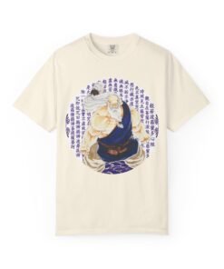 Built for rotation, this garment-dyed tee pairs soft handfeel with a timeless crew neck and premium DTG artwork that preserves robe texture, prayer-script strokes, and subtle aura lines wash after wash. Style with straight-leg denim or cargos; the art does the talking while the fit stays effortless. 🎌🔥
