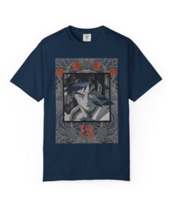 Ryu channels chi—Hadoken with wind-tossed leaves on a classic regular fit tee. Soft cotton, clean silhouette, premium DTG detail. 🔵🍃