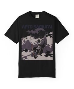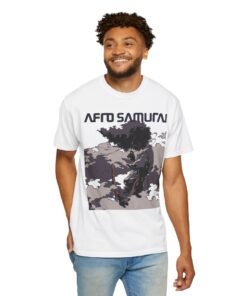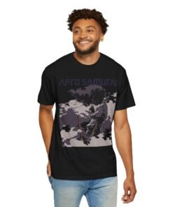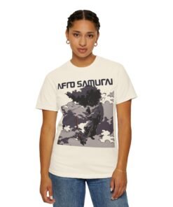 The Afro Samurai Mist regular fit Tee captures Afro in profile, half-veiled by drifting fog and cloud shapes—monochrome layers, flowing headband, and a quiet, razor-sharp stance translated into a clean everyday silhouette. Minimal lines, maximum aura. 🌫️⚔️