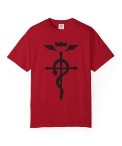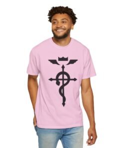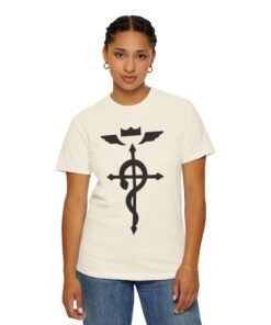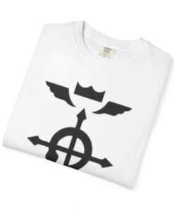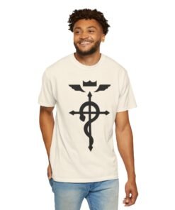 Show your love for alchemy with this Flamel regular fit Fullmetal Alchemist Tee. Featuring the iconic winged cross entwined with a serpent, this garment-dyed shirt carries one of the most recognizable symbols from the FMA universe. Subtle yet powerful, it’s a versatile piece for anime fans who value both style and meaning. ✝️🐍