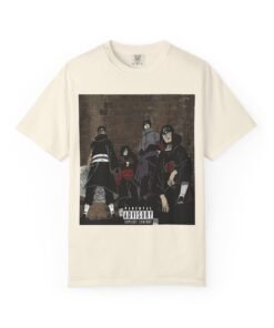 Naruto Uchiwa Tee regular fit front print edition flips one of the saga’s most iconic clans into a rap album cover aesthetic. Complete with heavy shadows, bold typography, and a Parental Advisory touch, this design blends anime legend with urban music culture. Because Uchiwa carry pride, power, and rebellion, the look translates perfectly into a statement tee. 🔥🎤