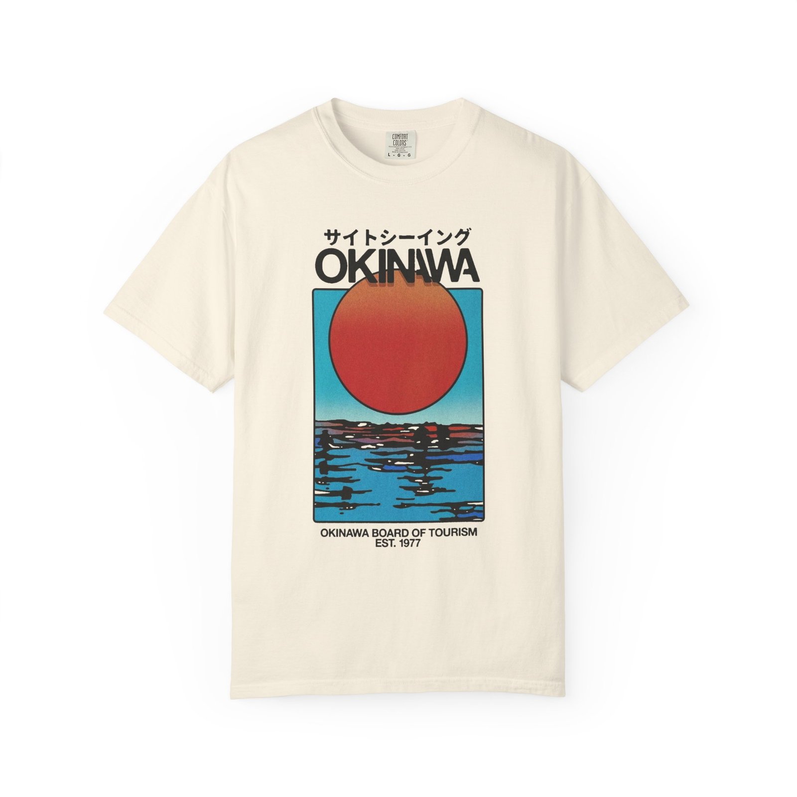 The Okinawa Tee is made from 100% ring-spun cotton with a ribbed crew neckline that holds its shape. The garment-dyed process ensures softness and depth of color, while premium DTG print locks in the artwork’s fine retro lines and warm tones. Moreover, the regular fit keeps it versatile—easy to pair with denim, light jackets, or casual streetwear looks. 🎌🔥