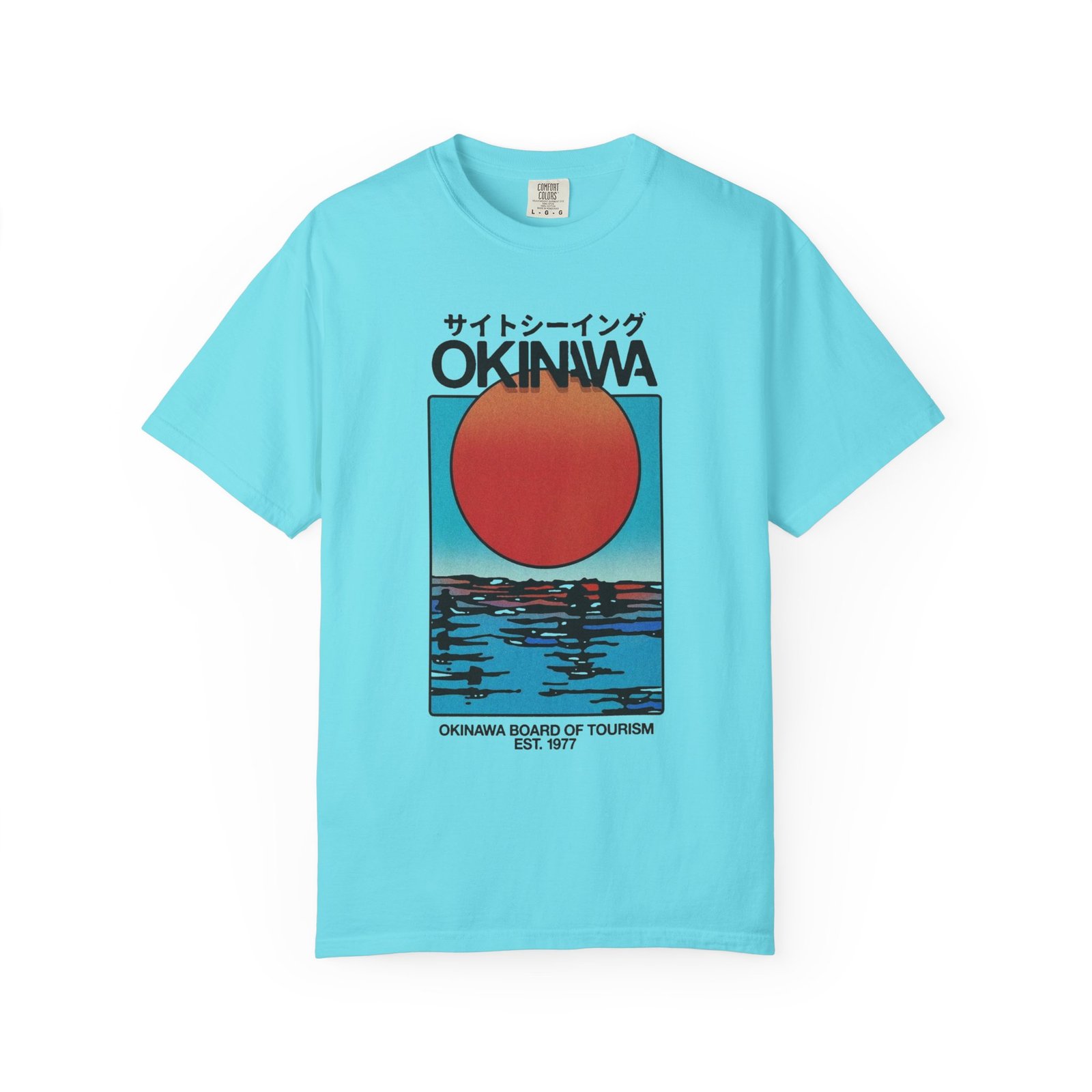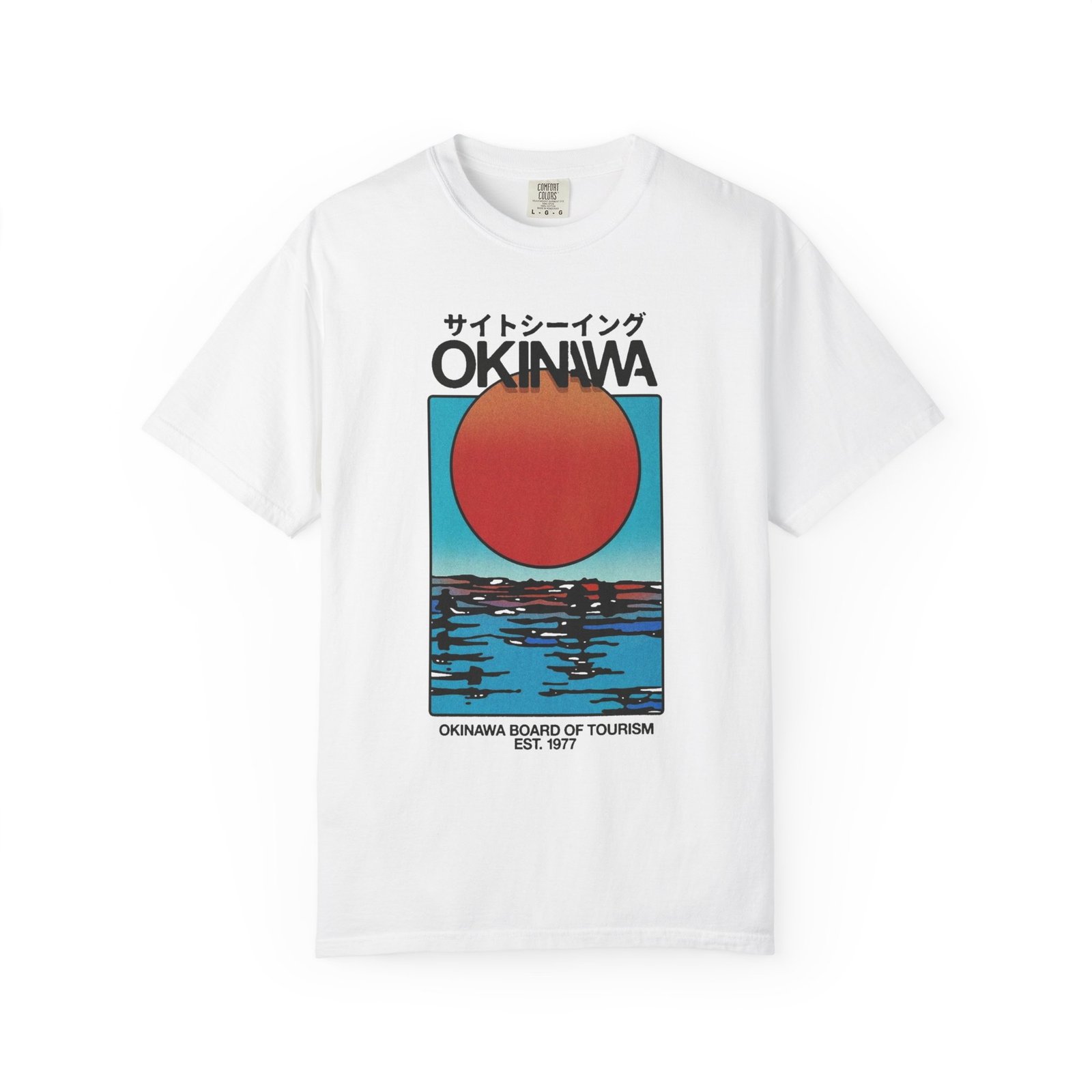 🌀 In the lore: Okinawa is more than turquoise seas and palm-lined beaches. Although shaped by centuries of history and Ryukyu culture, it also became a beacon of art, music, and laid-back energy in Japan’s identity. This tee celebrates that spirit through 70s minimalism, turning island vibes into wearable streetwear. 🌊🌴