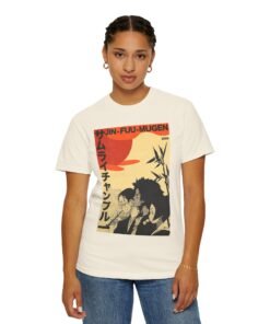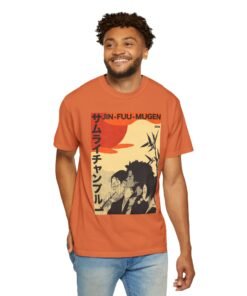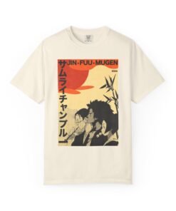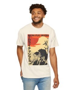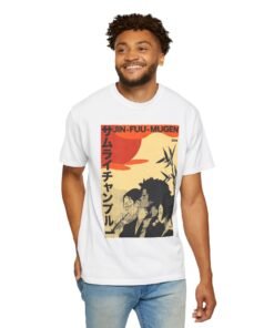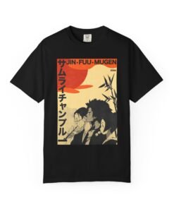 Whether you’re exploring sunny city streets, hanging out at the beach, or enjoying a laid-back weekend, this regular fit tee delivers comfort, durability, and easy versatility. Its clean front print makes it ideal for layering under an open shirt or wearing solo for a minimalist but colorful look. Designed for fans of Samurai Champloo who appreciate subtle references, this piece balances anime heritage with everyday fashion. 🎌