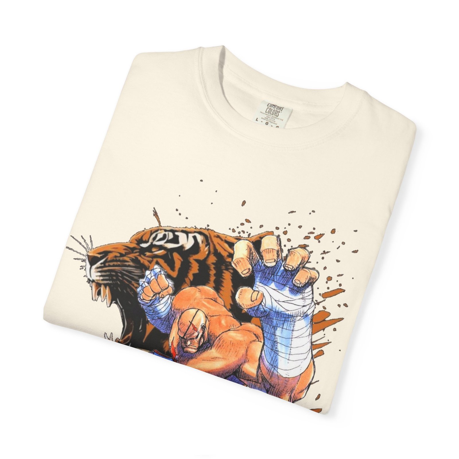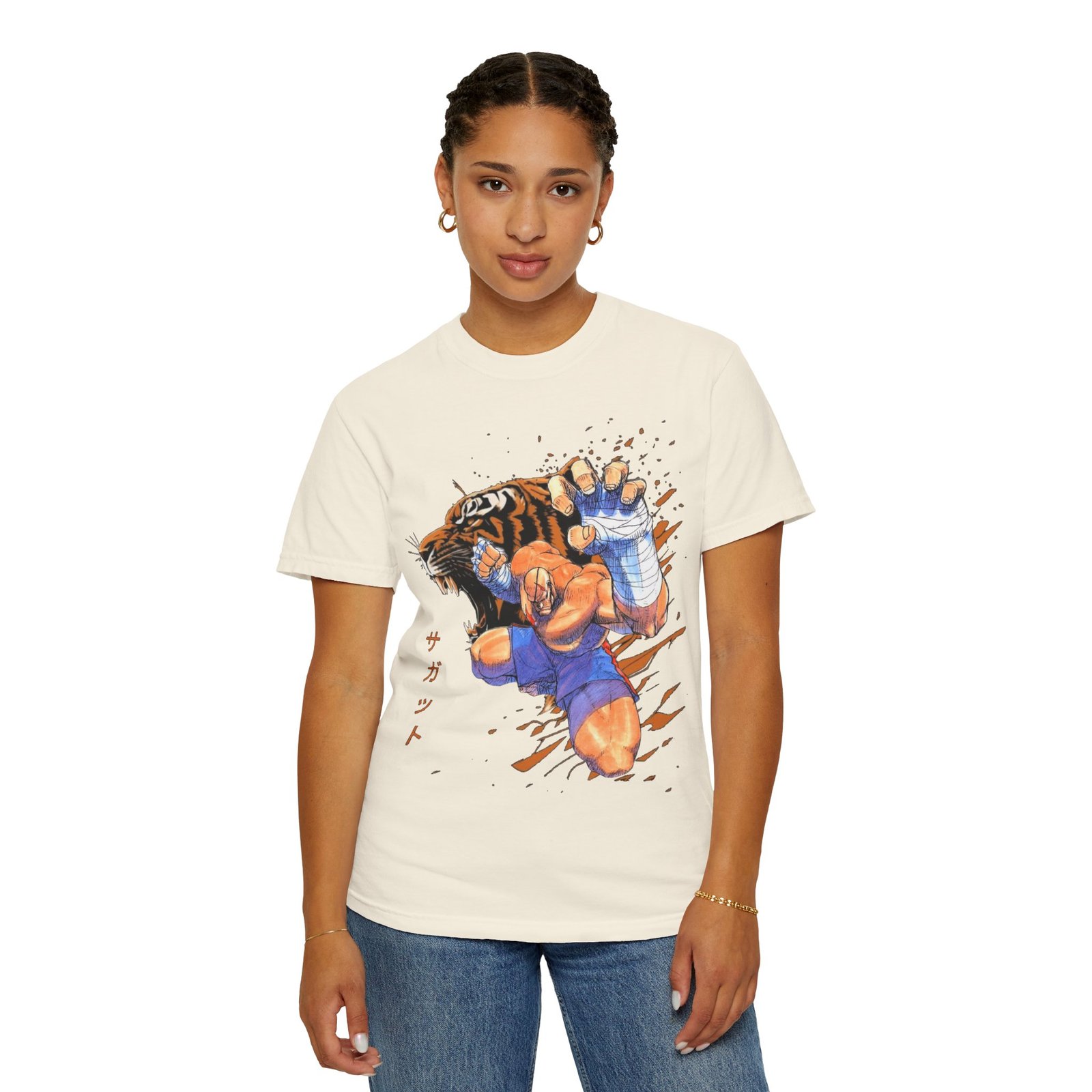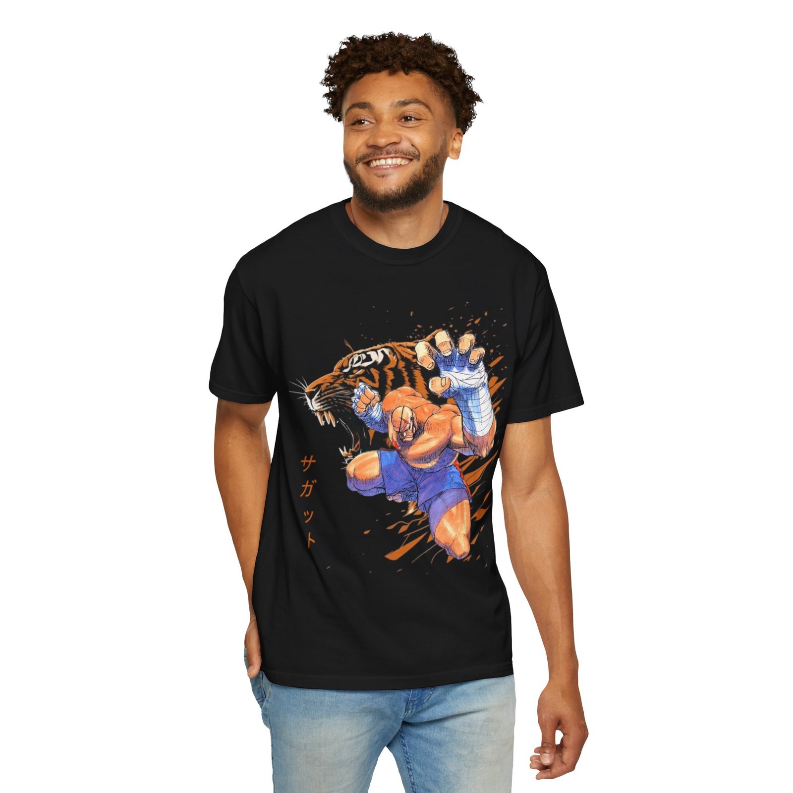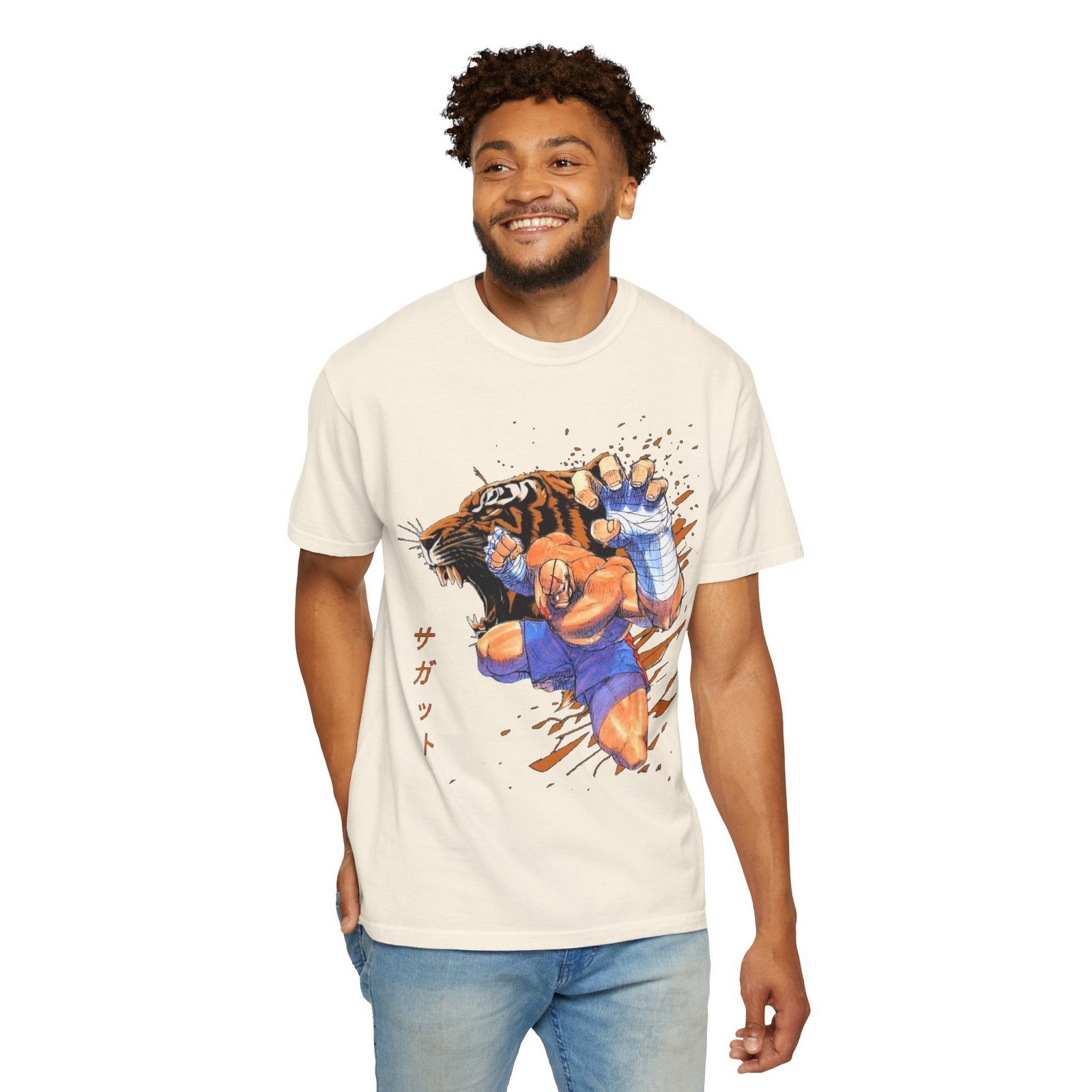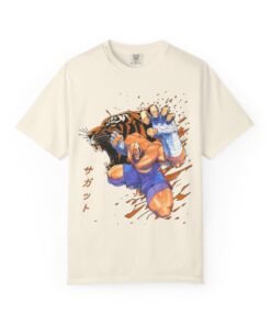 Why this tee? Because Sagat’s Tiger Knee is pure, unstoppable momentum—precision, power, and presence in one motion. This tee channels that impact into an everyday essential. ⚡