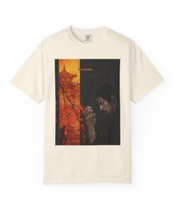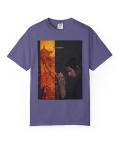 The Vagabond Musashi regular fit Tee captures the calm intensity of Japan’s most iconic swordsman, rendered in a brush-ink style with a temple backdrop. Stoic posture, wind-tossed hair, and stone steps fading into morning mist—this design balances raw strength with meditative focus, perfect for fans who want subtle anime-manga energy in a clean, wearable silhouette. ⚔️🏯