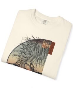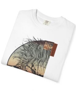 Made for everyday wear, the regular fit combines garment-dyed softness with a timeless crew neck silhouette. Crisp DTG print keeps every detail sharp—hair strands, kimono collar, shadowed cheekbones, and the ukiyo-e background—wash after wash. Whether styled with denim, cargos, or layered under a jacket, this tee balances subtle elegance with manga edge. 🔥
